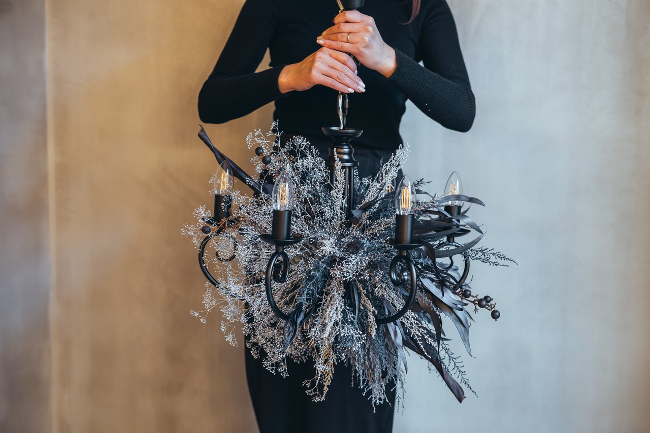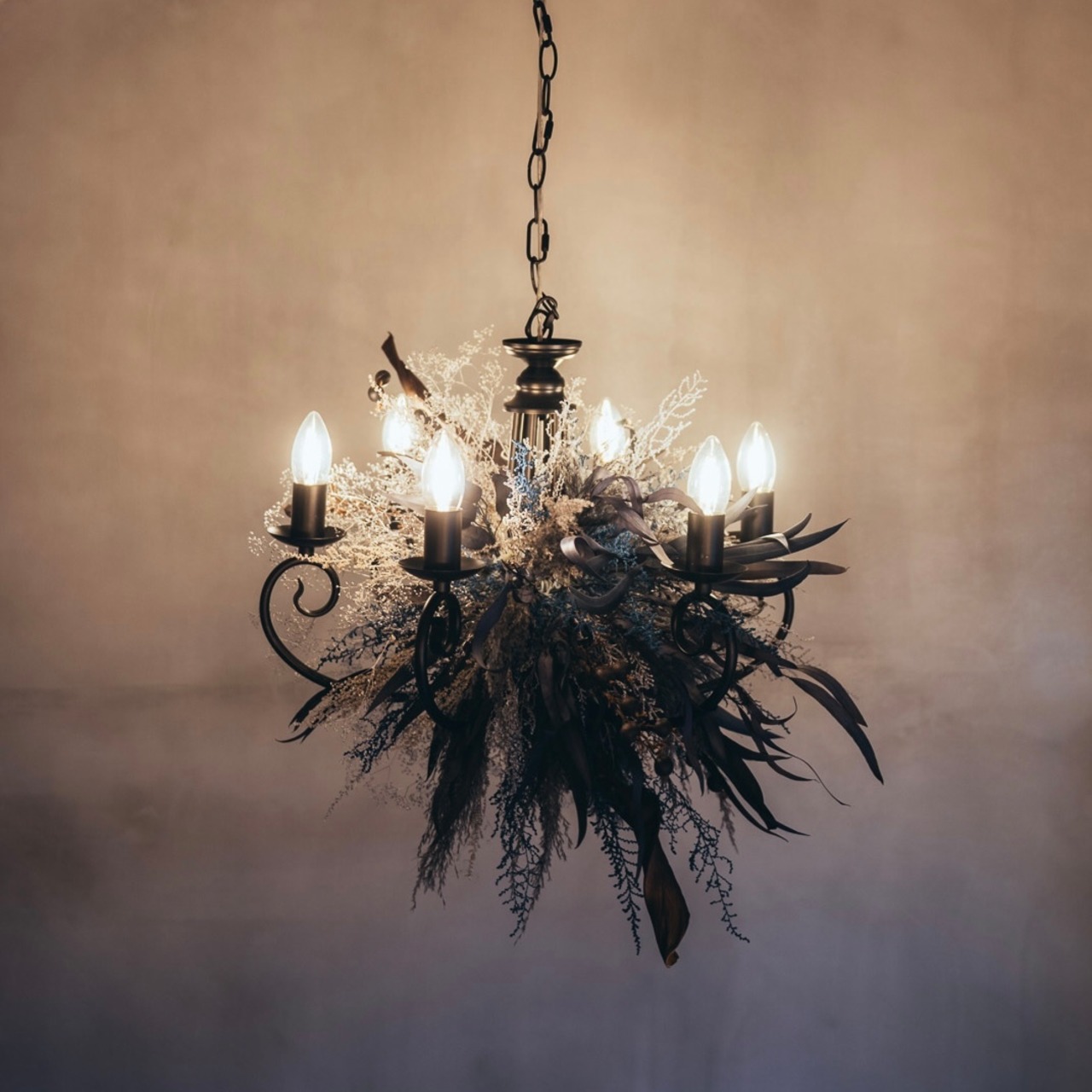 NEW【送料無料】品番MJ-2 ストレチアリーフ・かすみ草・ブラックベリー(シャンデリア&ドライフラワー専門店/照明・インテリア)